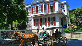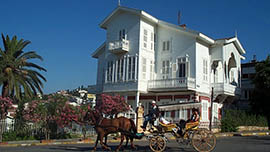 رحلة مذهلة حيث سنذهب إلى أكبرها وأجملها (Buyuk Ada) حيث يوجد العديد من المقاهي والمطاعم لنتناول الغداء في طبيعة هذه الجزيرة الرائعة. بعد ذلك سنقوم بجولة سياحية حول الجزيرة بواسطة الخيل (الحنتور) ..ومن ثم العودة للفندق.